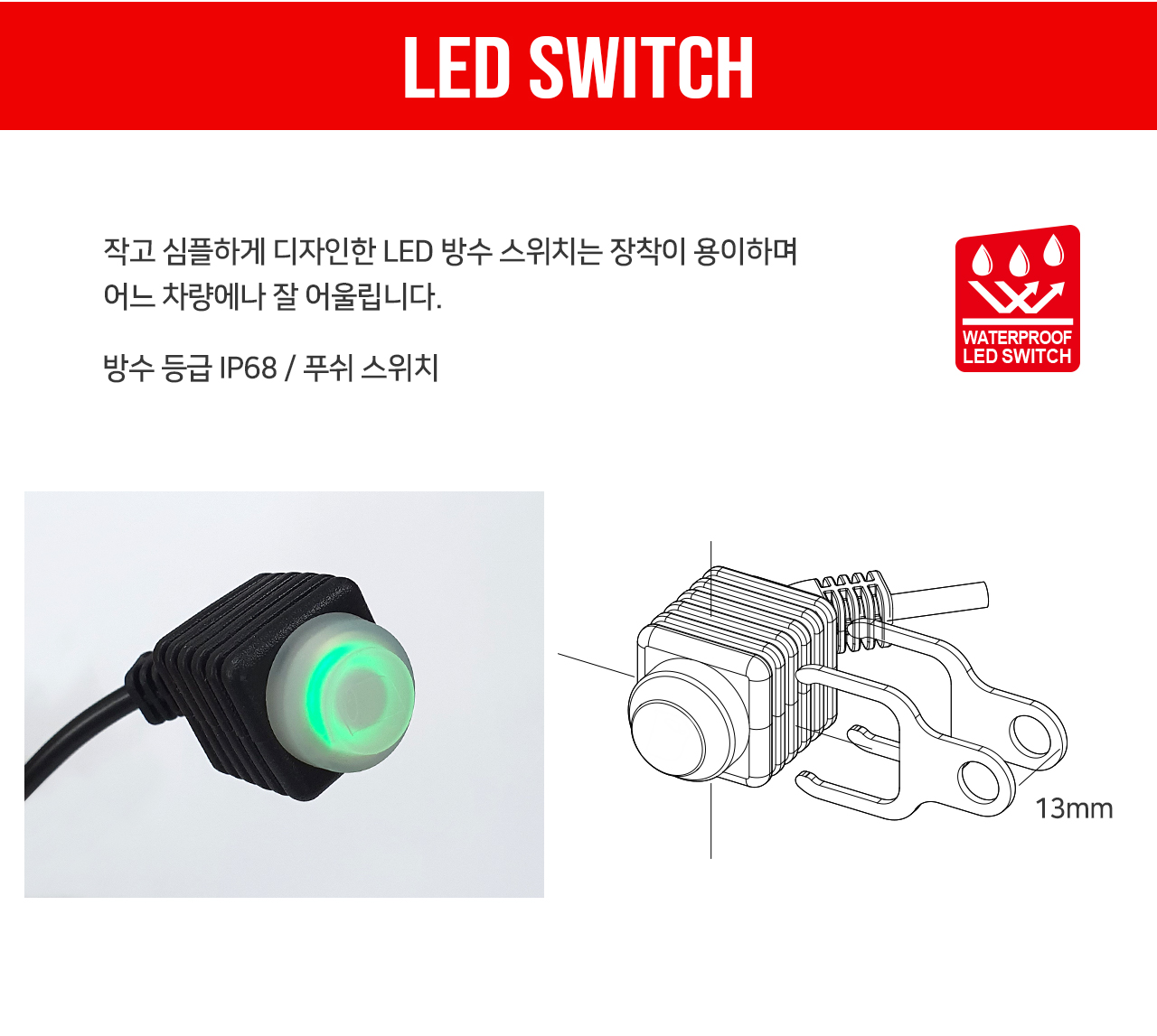 - 스위치에 실리콘 방수캡을 추가해 내구성을 향상시켰습니다. (2020년 업그레이드)
